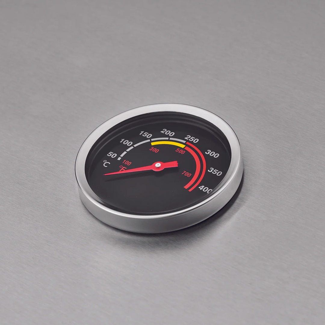 - Double skin stainless steel roasting hood with temperature gauge for great indirect cooking results